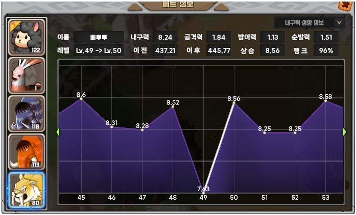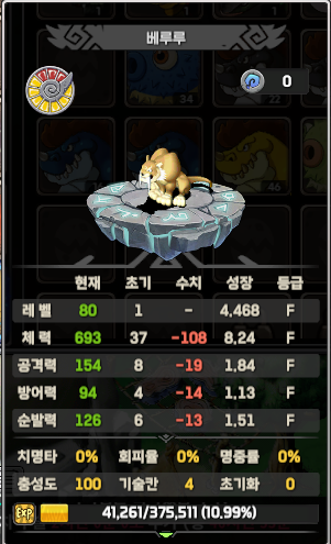 똥급도 애정펫으로 키울수 있는 팁 안녕나의사랑야야쪽지보내기 메일보내기 자기소개 아이디로 검색 전체게시물쪽지보내기 메일보내기 자기소개 아이디로 검색 전체게시물 25-08-18 10:59 2,314 0 12 목록 본문 F/F급이지만 통계를 들어가서 봐주시면49 > 50 레벨로 레벨업 했을때 통계 랭크가 96%인것을 알수있습니다.베이스가S가 아니여도 페트의 이번레벨업이 예를 들어 베루루 랭크 점수가 500~550 점이라고 했을때550에 가까운 랭크점수가 떳다고 해석하시면 됩니다.랭크가 높을수록 능력치가 잘떳다고 판단하시면 되요 ㅎㅎ베이스와 랭크는 별개입니다. 12 댓글목록0 등록된 댓글이 없습니다.