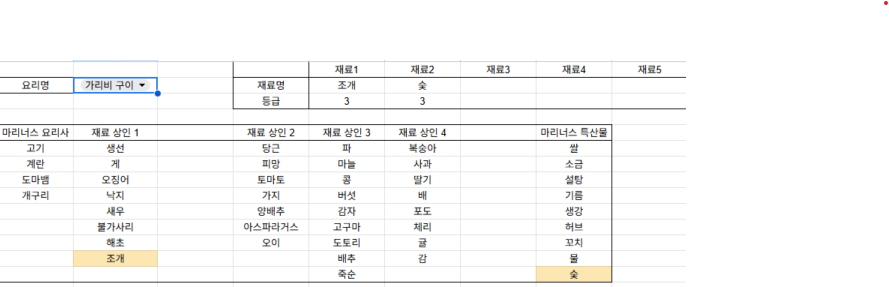 요리 찾고 만들기 귀찮아서 만든 시트..