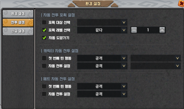포획 레벨 선택 1로 체크하고 자동 도망가기 체크 하면 몇 종류던 Lv.1은 잡는걸로 확인 했습니다..