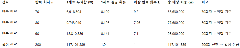 | 구간 | 회차 | 1회 비용 | 5회 합계 |