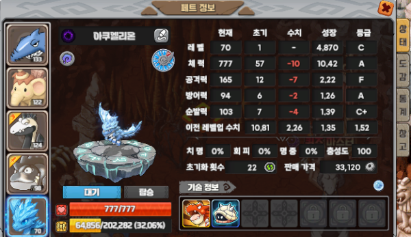 피는 777인데 왜 능력치는....