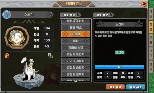 처음으로 얻어본 길잡이 칭호!