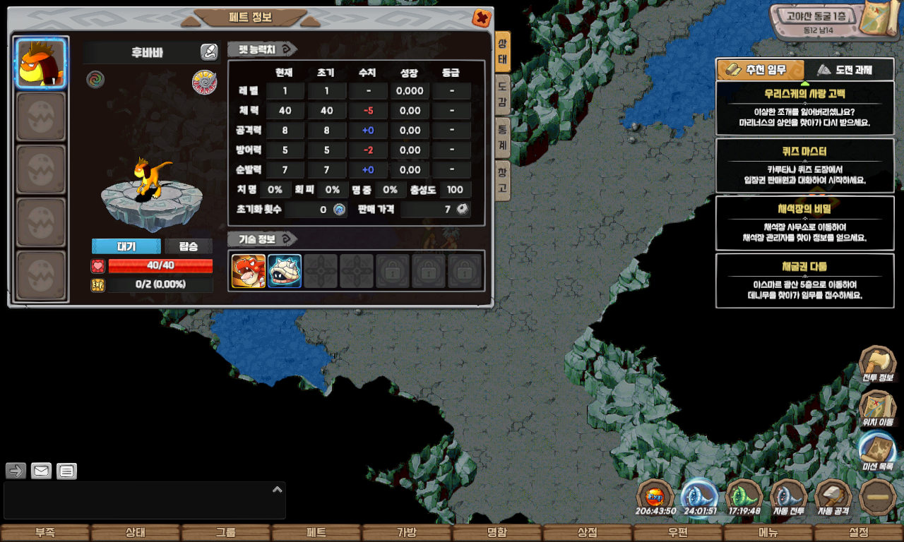 NPC에게 '이상한 조개'를 전달하면, 보상으로 타로곤 또는 후바바 중 하나의 펫을 랜덤하게 획득할 수 있습니다.