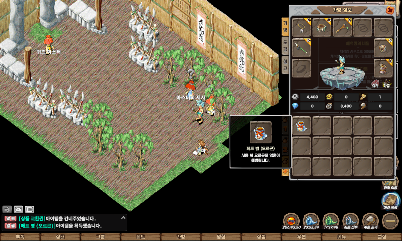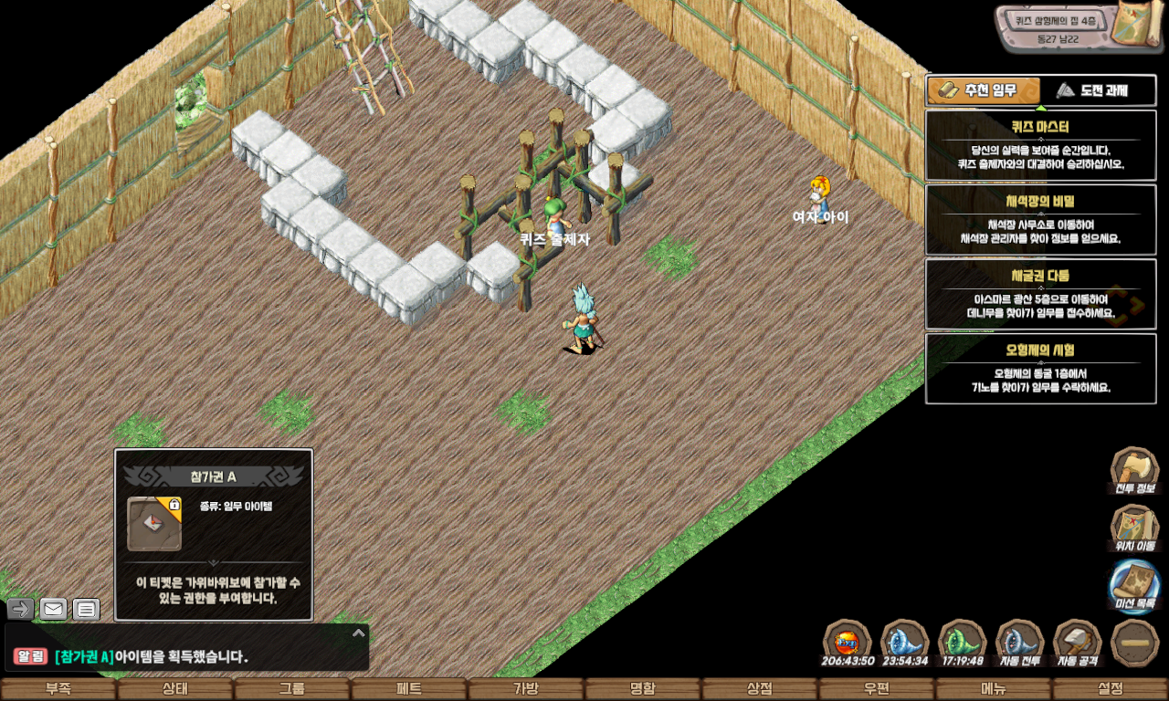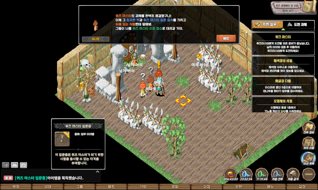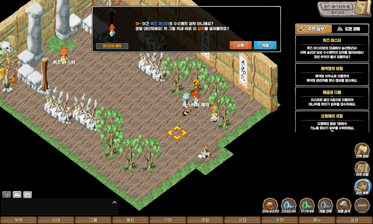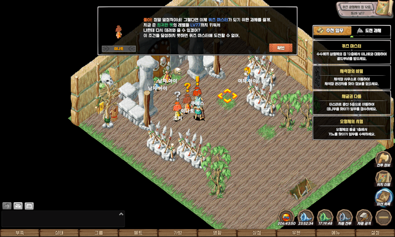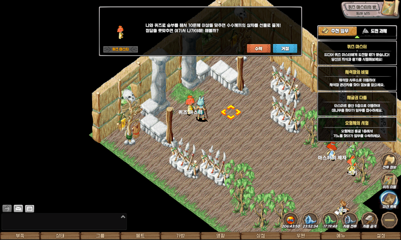 | 퀘스트 보상 | 펫 모가로스, 명성 500, 칭호(퀴즈 마스터), 포테이토 칩, 페트 병(푸룡 종류) 중 랜덤 |