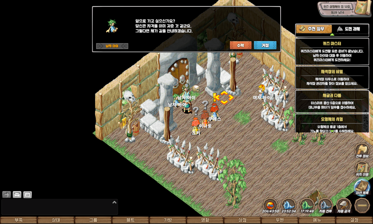 | 성인식 퀘스트 중 만날 수 없는 사람은? | 의식의 정령 |