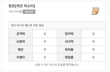 | 퀴즈마스터 퀘스트 시작 레벨은? | 80 |