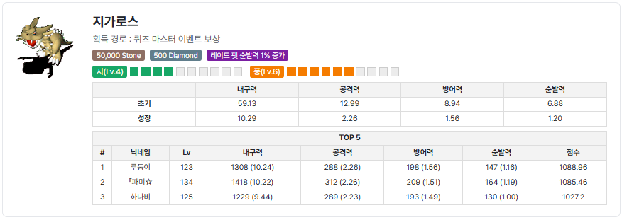 | 오투투의 속성 비율은? | 지6 풍4 |