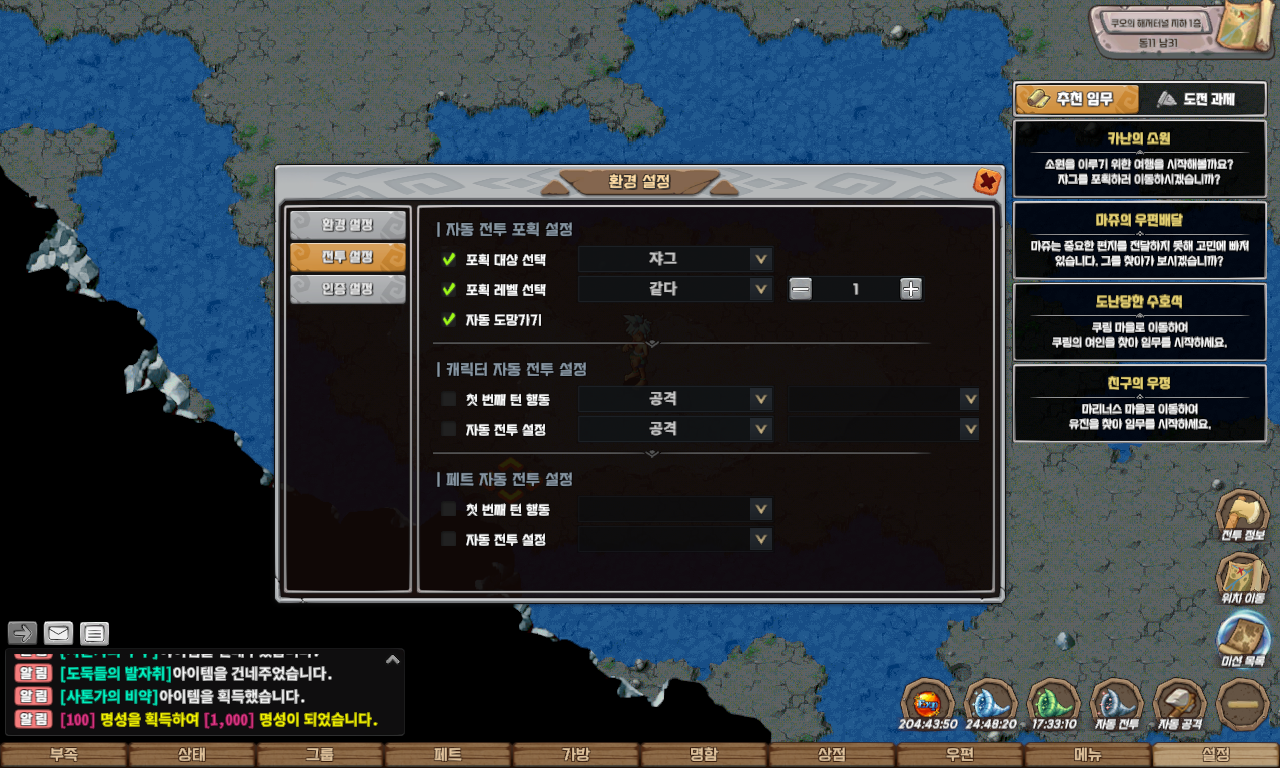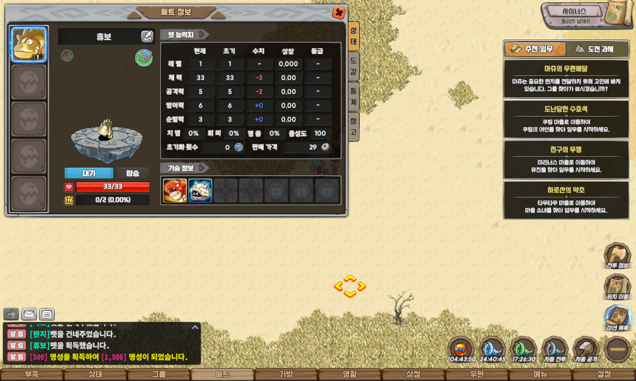 유의사항: 월드에서는 반드시 Lv 1 야생 펫만 포획 가능하도록 설정되어 있으니, 이 점 반드시 참고해 주시기 바랍니다.