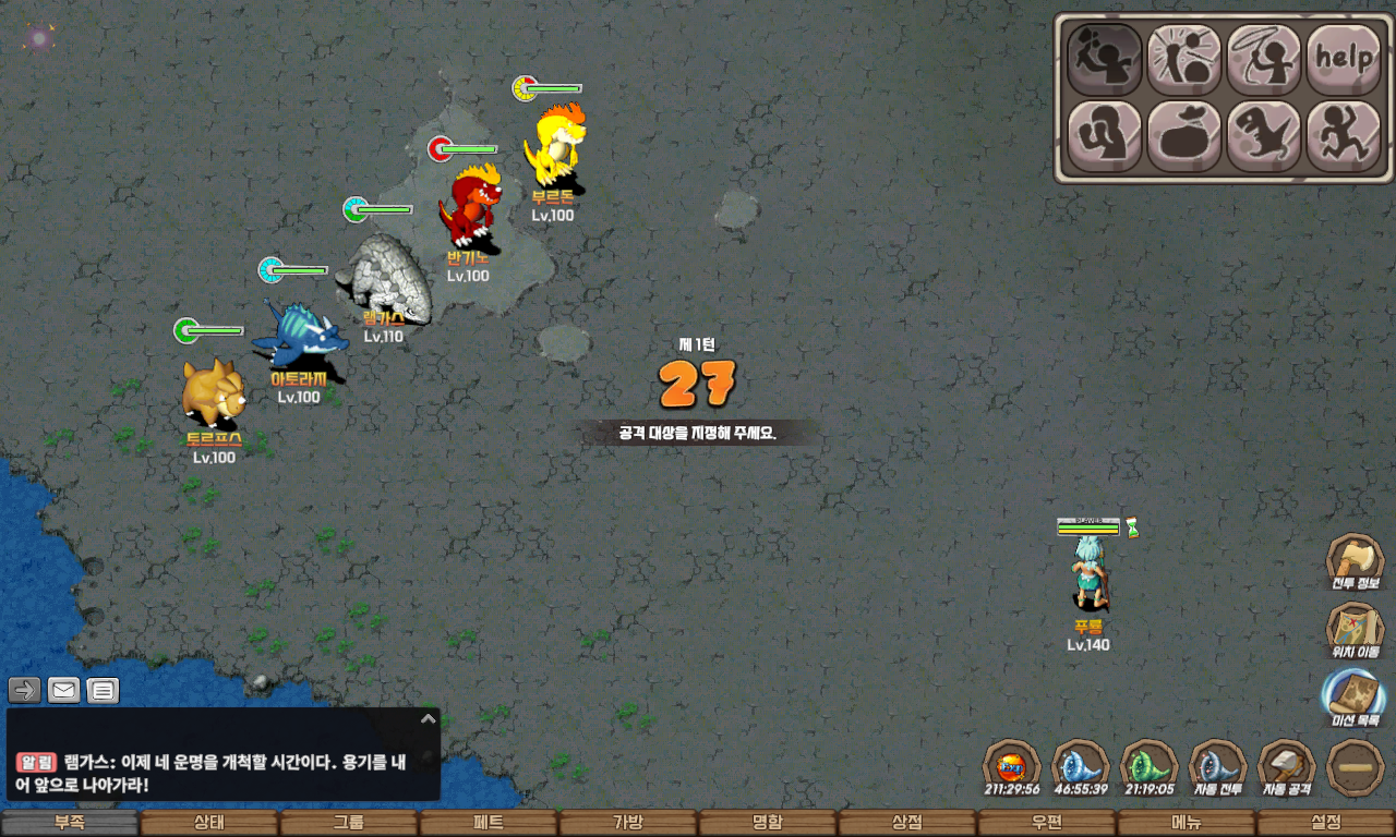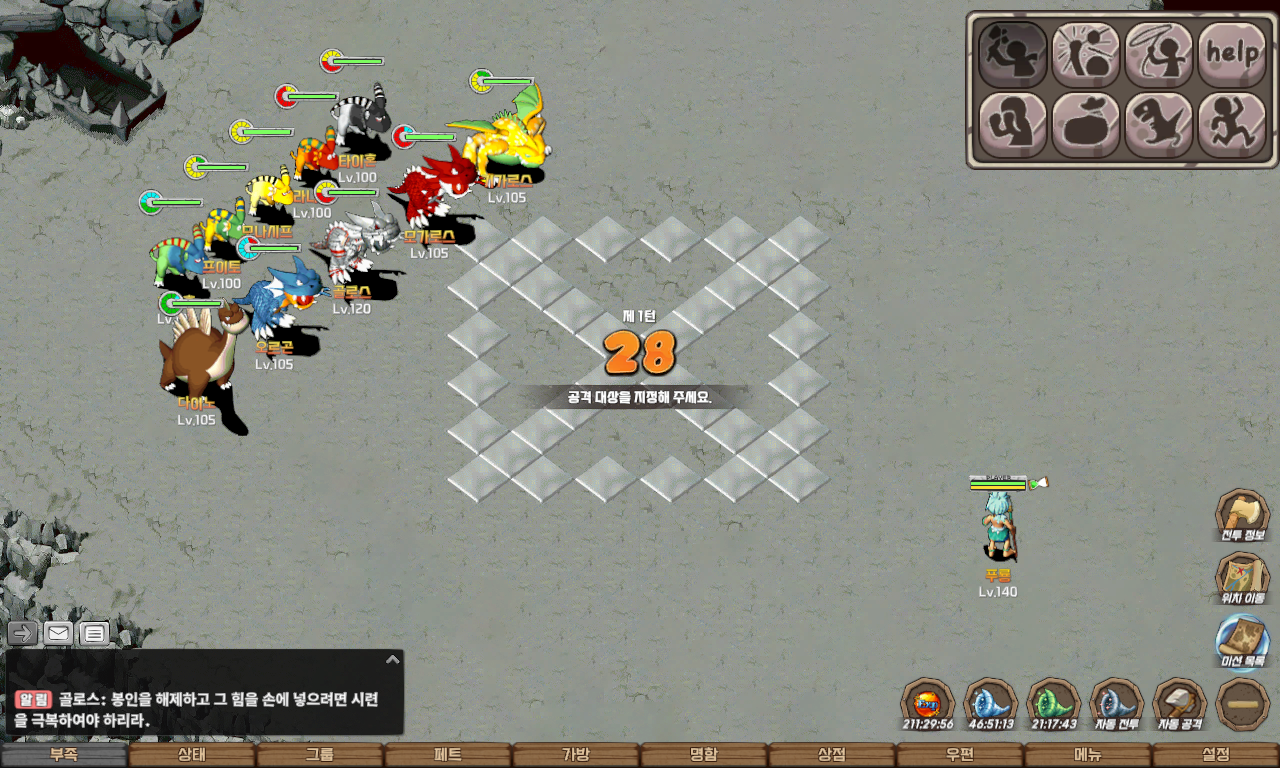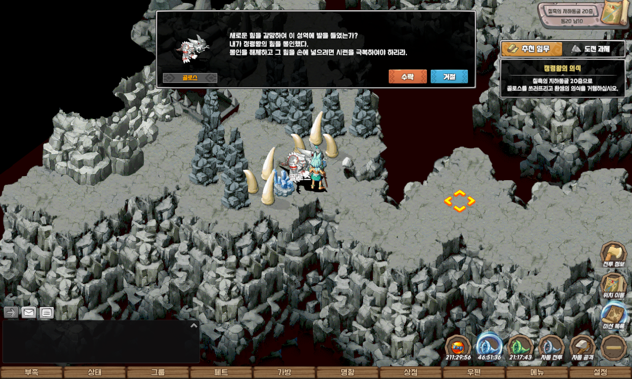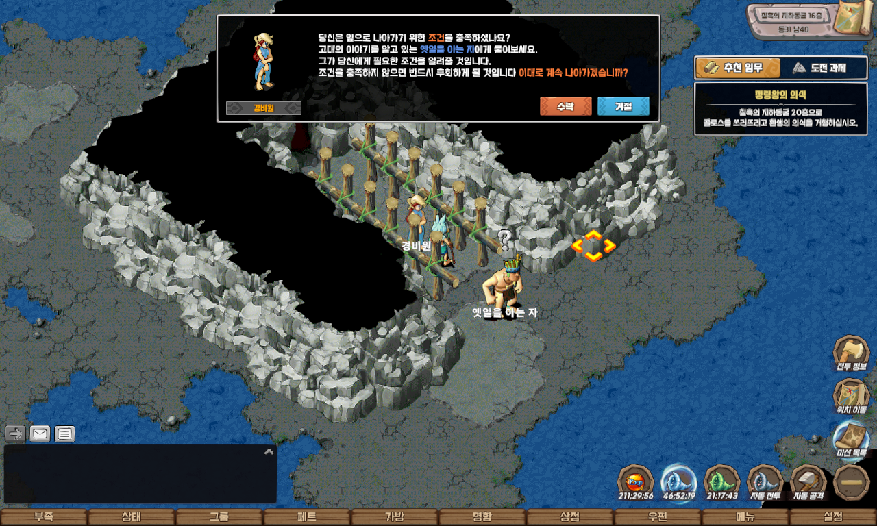 자동 길찾기를 이용하여 칠흑의 지하동굴 12층 동 30 남 11에 도착하면 일정 확률로 수호짐승들이 출현합니다.