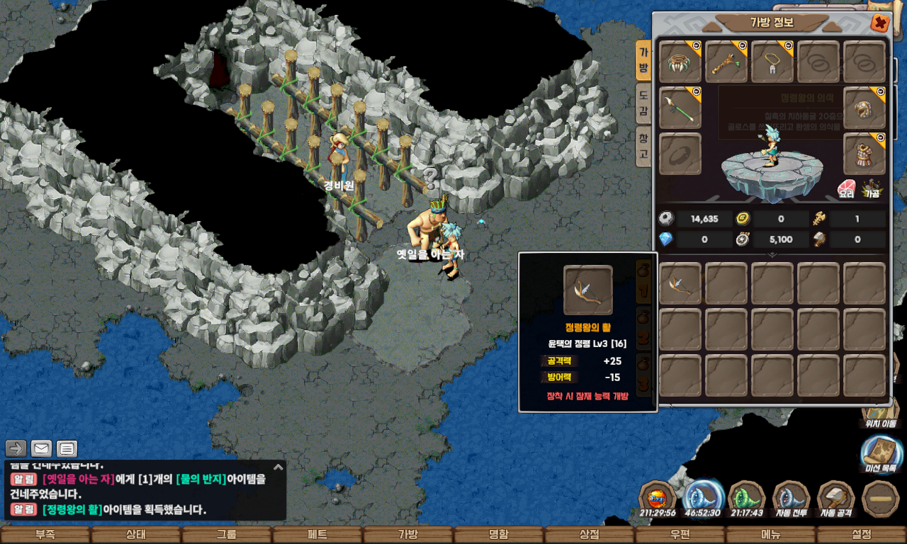 획득한 증표 4개(대지, 물, 불, 바람)를 소지하고 있다면 '정령왕의 활'을 얻으실 수 있습니다.