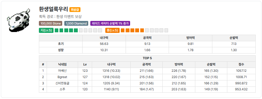 | 환생 횟수 | 지급 펫 |