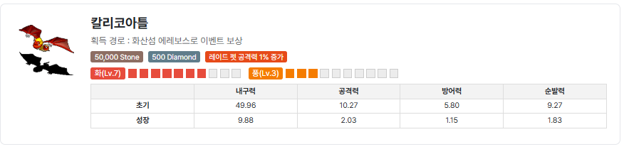 | 퀘스트 보상 | 에레보스 대륙 진입 권한, 펫 칼리코아틀, 명성 300 |